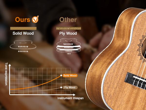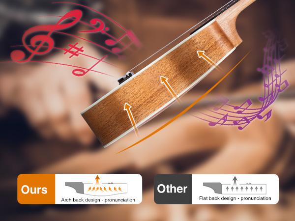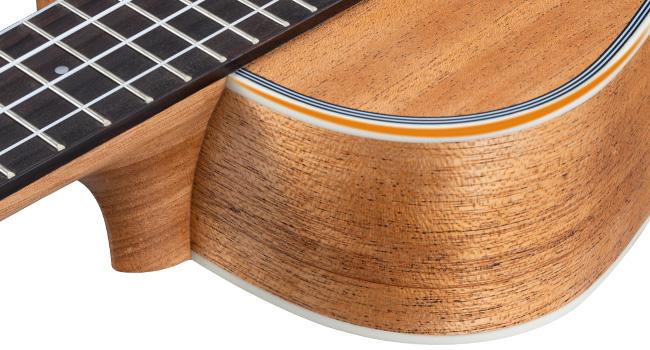 The edge is clean and the touch is smoother and rounder. The ukulele has an open semi-gloss finish for a more comfortable. ABS hemming prevents impact