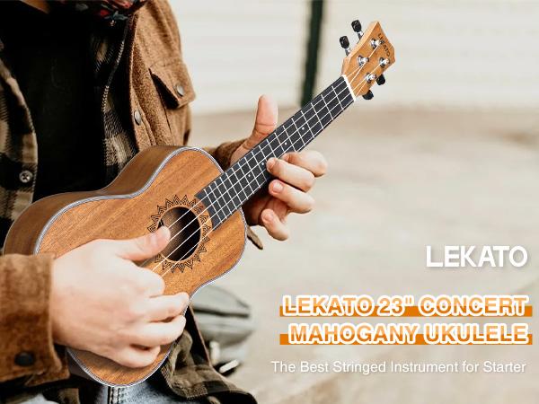 LEKATO Ukulele Concert Mahogany, 23 Inch Ukelele Bundle for Beginners Adults Professional, Nylon String Wooden Hawaiian, Starter Uke Kit, Back to School