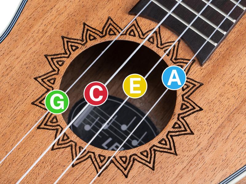 - Standard tuning features strings tuned to G, C, E and A, as shown in the picture. You can start tuning from the third string, which is C, then G-E-A.