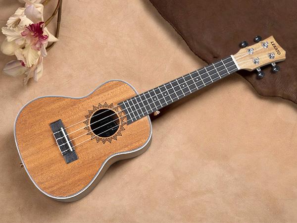 LEKATO concert ukulele features a high-density bone nut and saddle combined with four highly polished smooth Aquila carbon nylon strings for clear, beautiful resonance and more sustain Richer, brighter and warmer sound when played