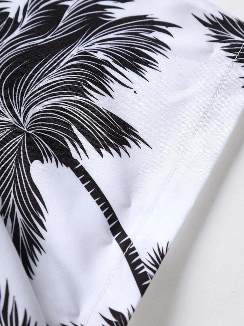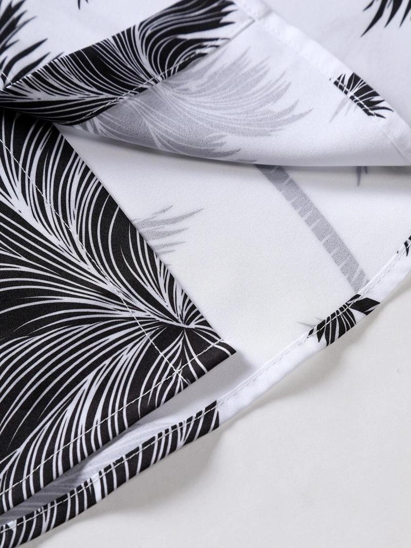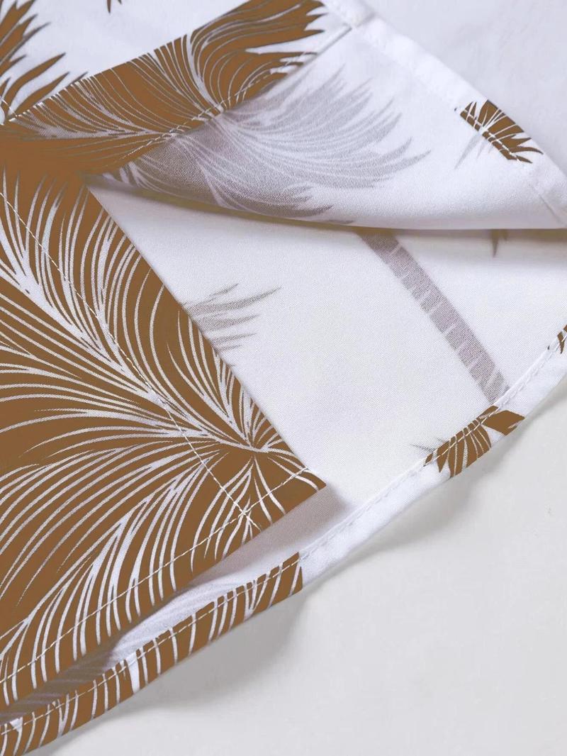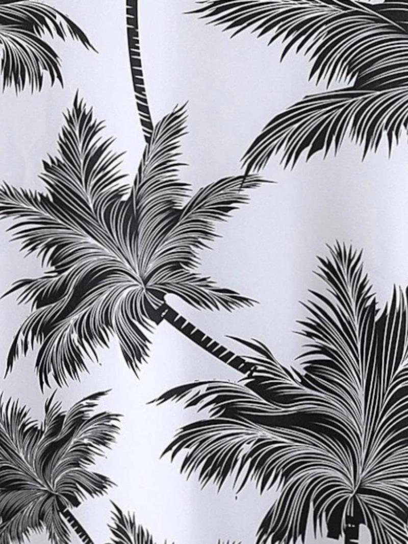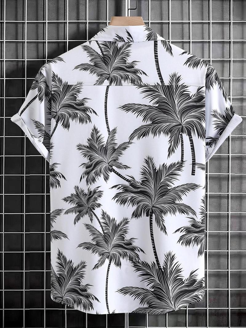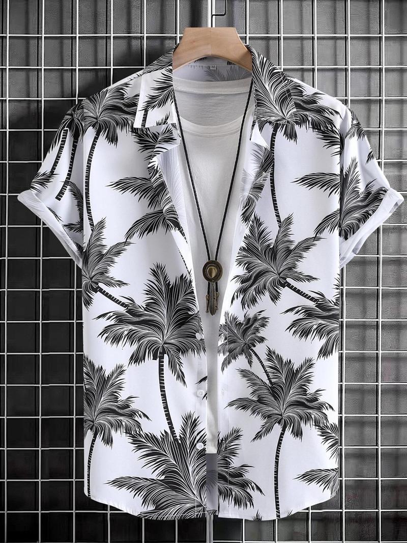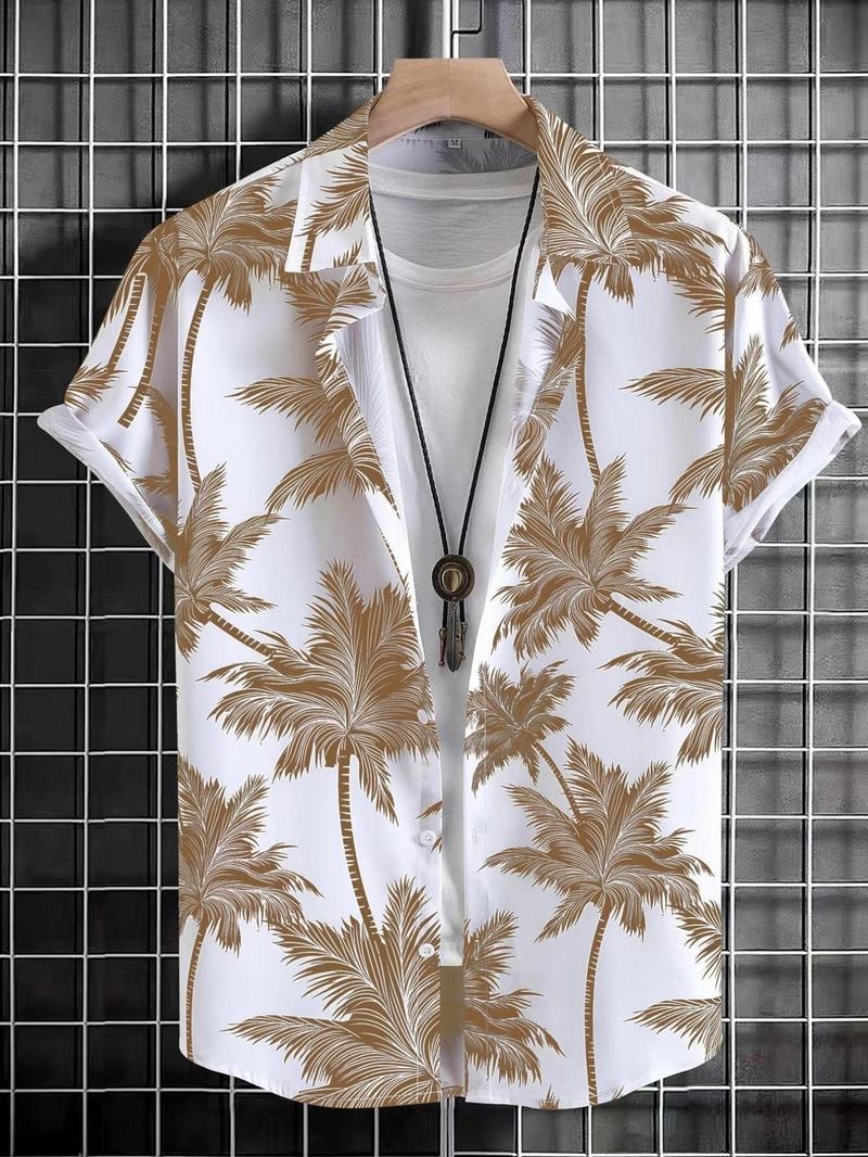 Men'S Thin Tropical Print Button Front Shirt, Loose Random Palm Tree Graphic Short Sleeve Hawaiian Shirt, Summer Clothes, Mens Clothin, Please Purchase One Size Smaller