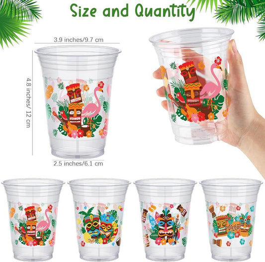 120 Pcs Tiki Party Cups 16Oz Hawaiian Luau Drinking Cups Tiki Themed Luau Disposable Plastic Cups Tropical Hibiscus Wine Glasses Flamingo Cups for Hawaiian Luau Tropical Beach Party Pineapple
